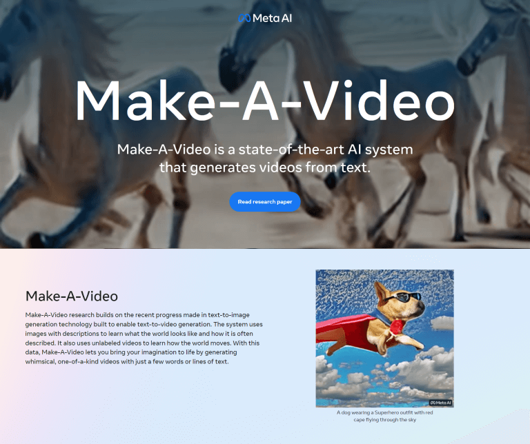 Segundo a Meta, “o sistema aprende como é o mundo a partir de dados de imagem de texto emparelhados e como o mundo se move a partir de imagens de vídeo sem texto associado. Com apenas algumas palavras ou linhas de texto, o Make-A-Video pode dar vida à imaginação e criar vídeos únicos cheios de cores vivas, personagens e paisagens. O sistema também pode criar vídeos a partir de imagens ou pegar vídeos existentes e criar novos semelhantes”.